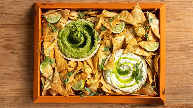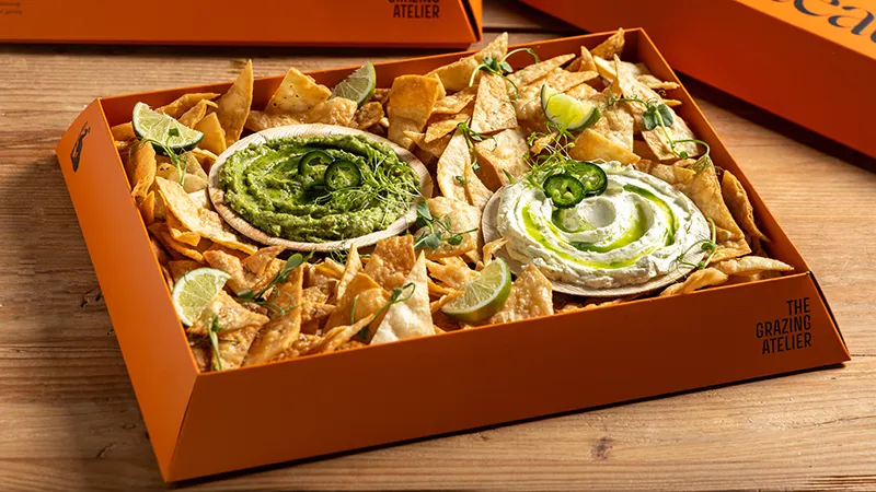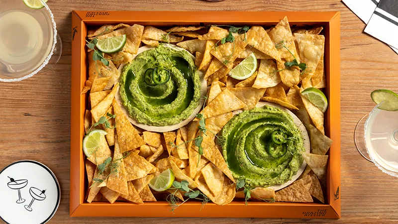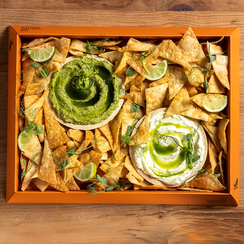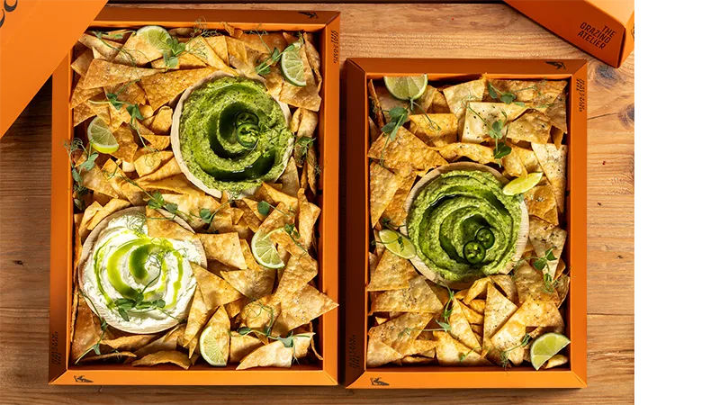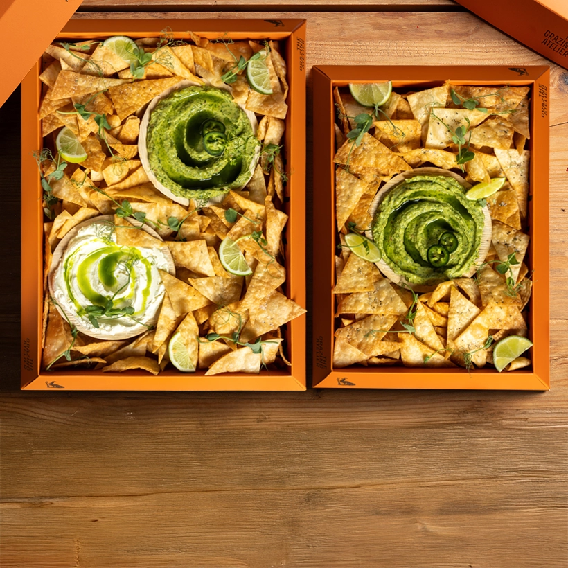 Φρέσκο guacamole, δροσερή sour cream, τραγανά χειροποίητα tortilla chips για βούτες, διπλές βούτες και…πάλι από την αρχή! Μια μικρή fiesta μέσα σε box…χωρίς την μπάντα των Mariachi.
